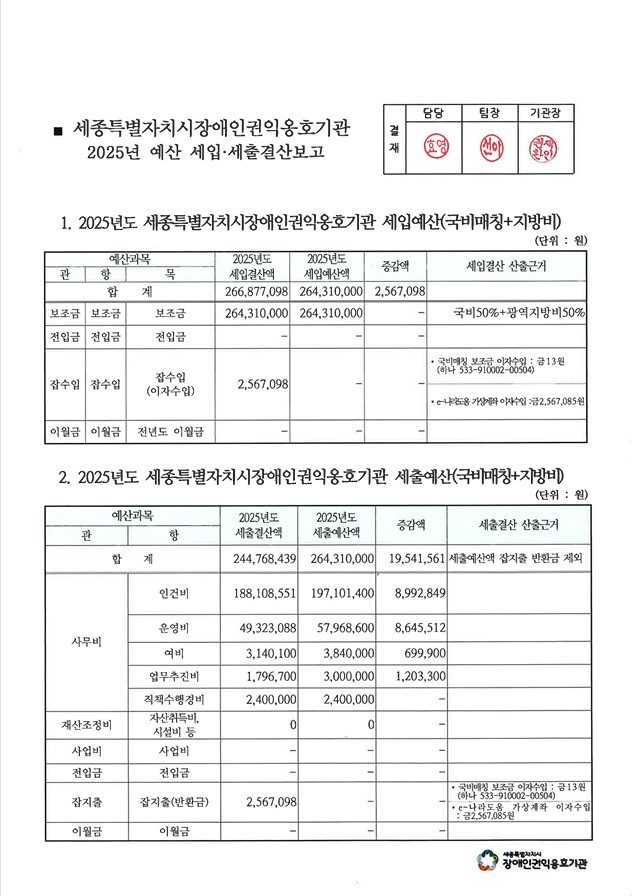 2025³â ¼¼Á¾Æ¯º°ÀÚÄ¡½ÃÀå¾ÖÀαÇÀÍ¿ËÈ£±â°ü ¿î¿µ ¿¹°á»ê º¸°í