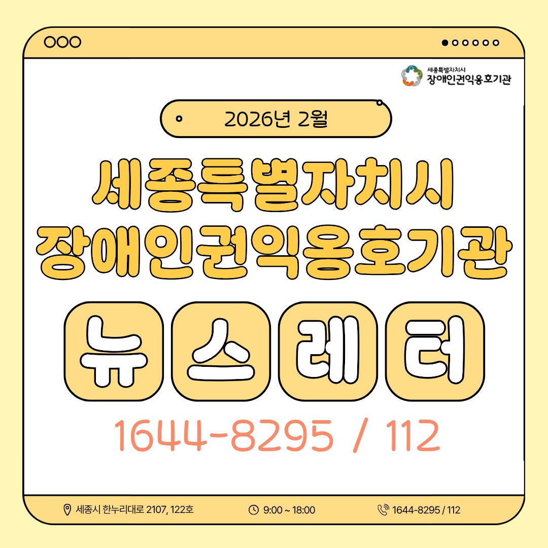 [´º½º·¹ÅÍ] ¼¼Á¾½ÃÀå¾ÖÀαÇÀÍ¿ËÈ£±â°ü 2¿ù ´º½º·¹ÅÍ
